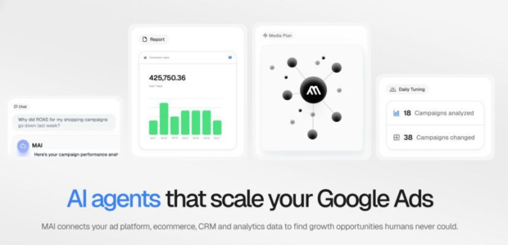 MAI通过实现谷歌广告全自动管理与利润化规模扩张,直击这一痛点。公司AI Agent深度融合企业全维度数据,7×24小时自动调整支出、发掘机遇并在效果波动时实时优化。
